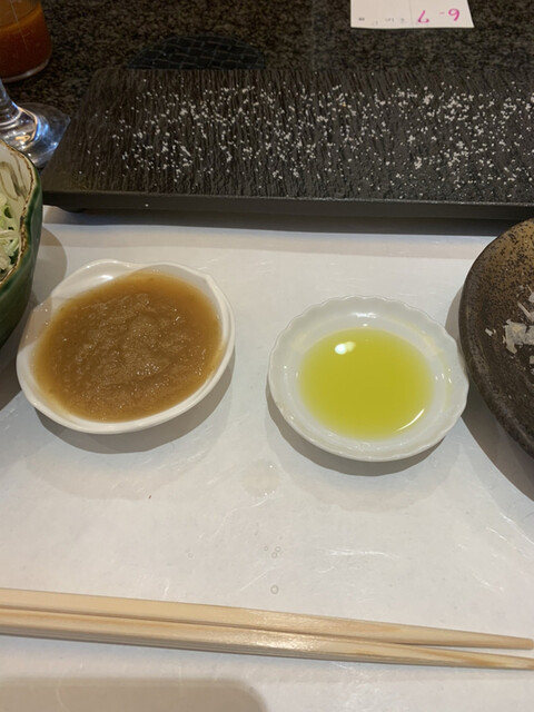 白トリュフソルトとオリジナルソース、オリーブオイルで