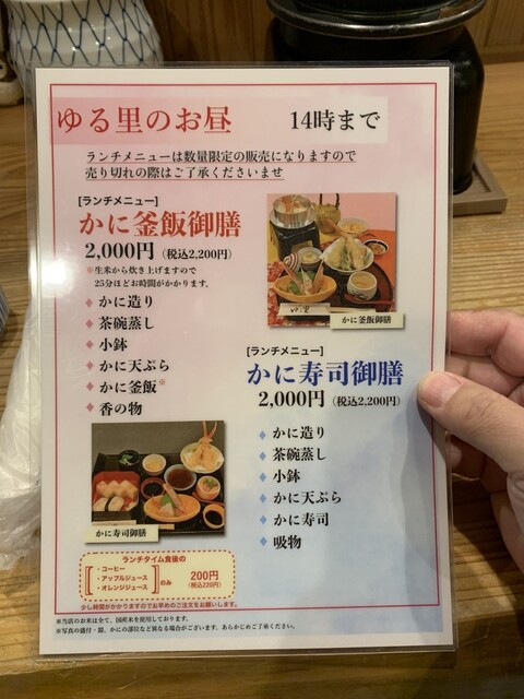 予約したランチかに釜飯御膳 2200円