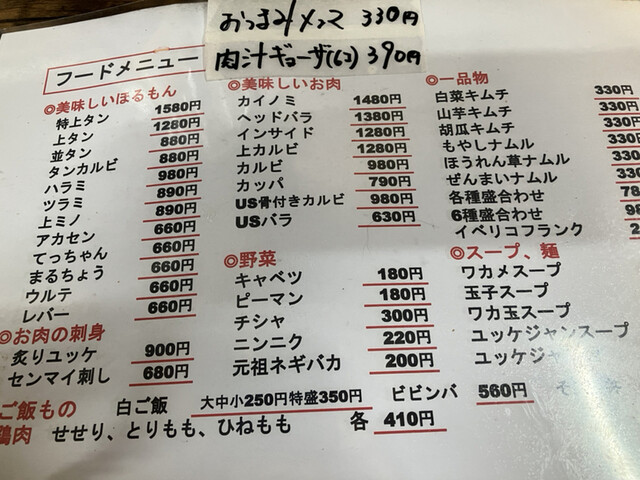 「ハラミ」「USバラ」「マルチョウ」「もやしナムル」をオーダー。