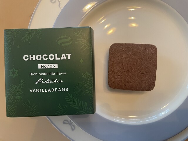 No.125 ピスタチオは期間限定商品。口に入れた瞬間にピスタチオの風味が広がる贅沢なフレーバー。ホワイトチョコレートガナッシュに混ぜ込んだ砕いたピスタチオの食感や香ばしさ、バランスの取れた味わいです。