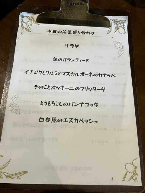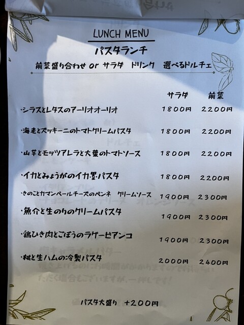パスタメニュー