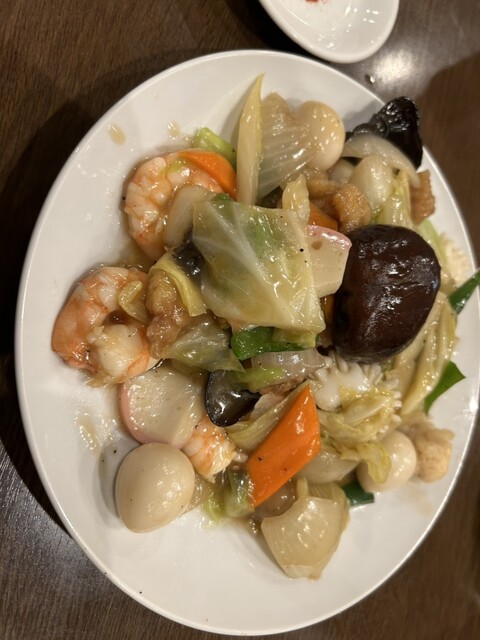 八宝菜、ニラソバ、天津飯をシェアしました。