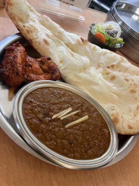 ナンは湯種しているみたいなもっちり食感で小麦の風味がいい。食べ応えがあるのでお腹いっぱいになりました(^^)