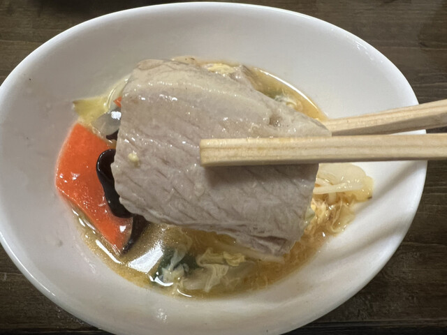 トロミがついた醤油ベース、熱々で一気に体が温まります。