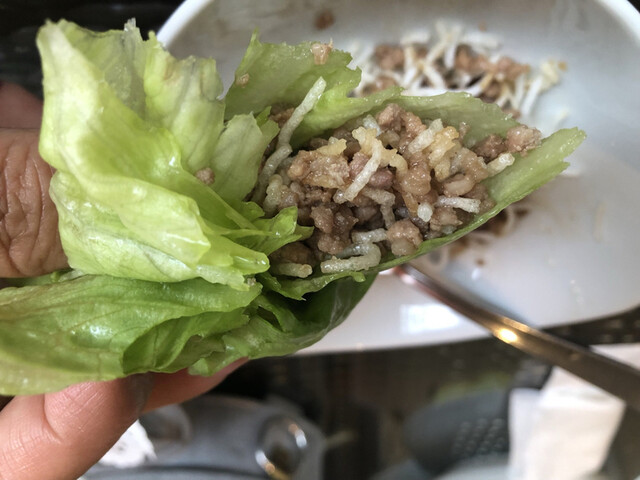 レタス包みは特製味噌ダレで炒めた角煮がとても柔らかくとても美味しい。