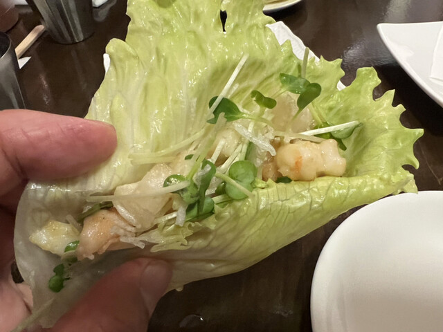 何を食べても美味しいのですが、大好物の“海鮮レタス包み”と“炒めそば”はかかせないメニューです❣️