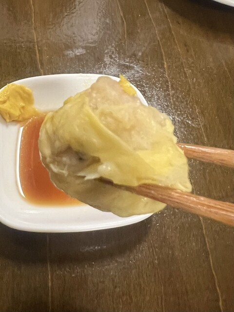 熱々蒸し立ての点心で辛子酢醤油で食べます。海老の風味が口いっぱいに広がり海老好きには堪りません。