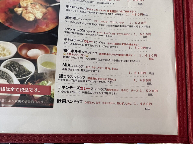オーダーは、私が“海鮮スンドゥブ3辛”に“和牛ホルモン”をトッピングで奥さんは“野菜スンドゥブ0辛”、追加で単品“野菜チヂミあさり”…