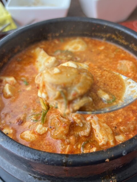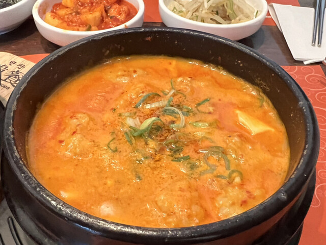 スンドゥブ食べるなら絶対ココ‼️牛骨と海の幸の相性よし…