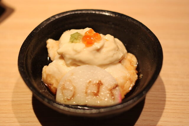 ▼そんな九平次と合わせるお通しは胡麻豆腐