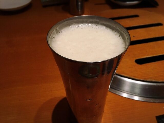 焼肉を前になんとも贅沢な一口です