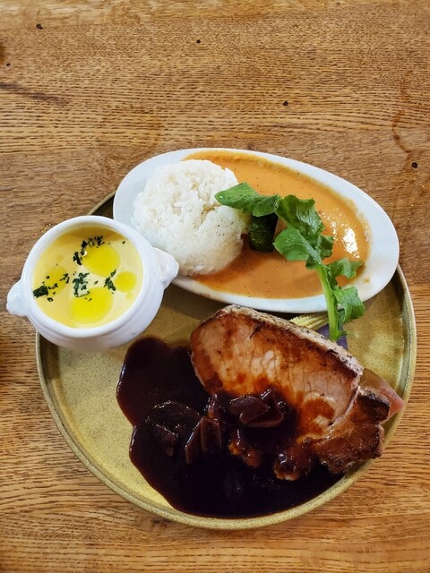 肉やストロガノフもあるのに、ポタージュ盛り合わせというメニュー名。