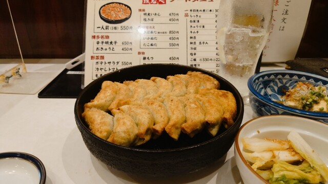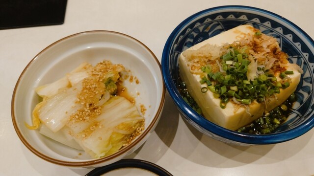 もつ煮、厚揚げ、おひたし、日本酒をいただきました。