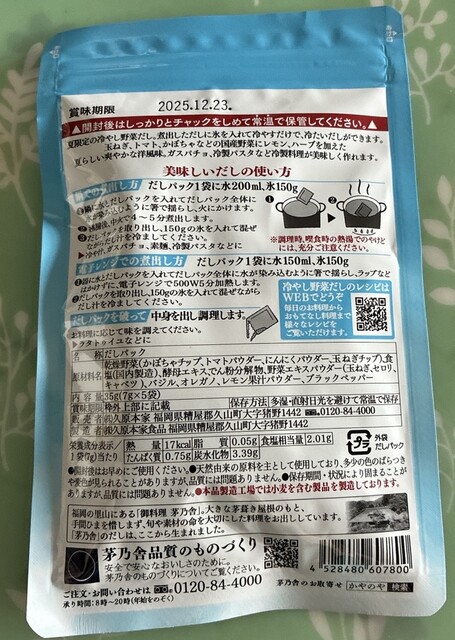 夏季限定の冷やし野菜だしは、袋を開けた瞬間からハーブの香りがして、洋食にもピッタリ!