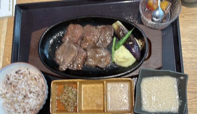 タンは硬すぎず柔らかすぎず食べやすい薄切り。2種類のたれでいただきます。