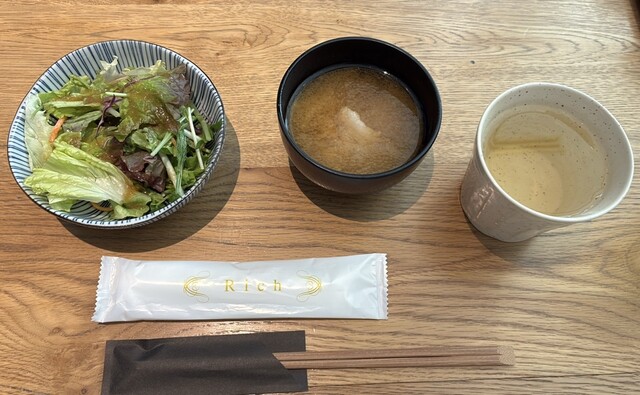 ランチメニューは白米か雑穀米を選べて、スープとサラダがおかわりできます。