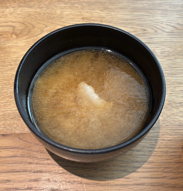 スープは熱々の豚汁。出汁が良く豚肉、大根、玉ねぎ、にんじんがはいっていました。
