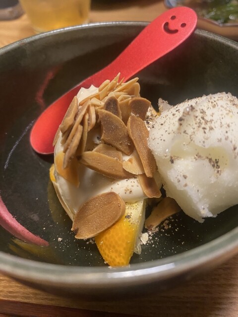 ・口直しのシャーベットとクリームチーズのやつ(美味しい、成城石井で売っててほしい)