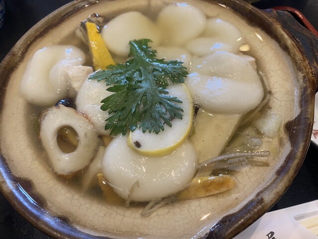 乾物から出る旨みがしっかりお餅にも染み込んでいて、いろいろな具材もあり最後まで飽きずに楽しめます。