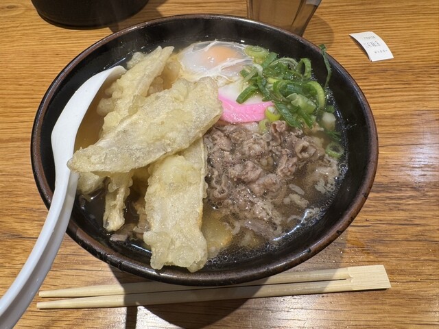 看板メニューのごぼう天うどんに生卵をトッピング。入店後は、おかみさんがフロア全体に目を配りながら、お待たせして申し訳ありません、大変お待たせいたしました、などのお声掛けがあり、名店にあぐらをかかずにご丁寧に経営されているなという印象をいだきました。