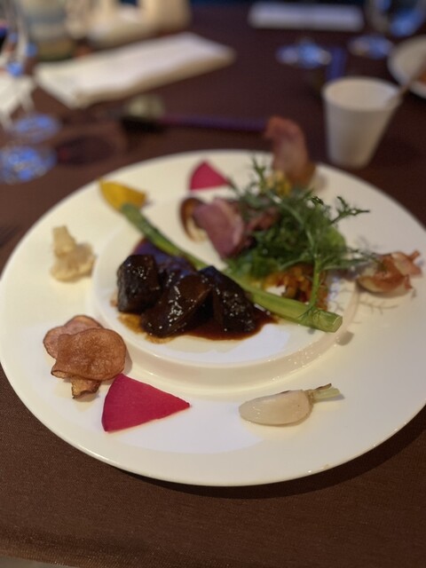 富良野黒毛和牛ホホ肉の赤ワイン煮込みは、夫が注文。シェアしました、美味しかったです。ワインが進みます。