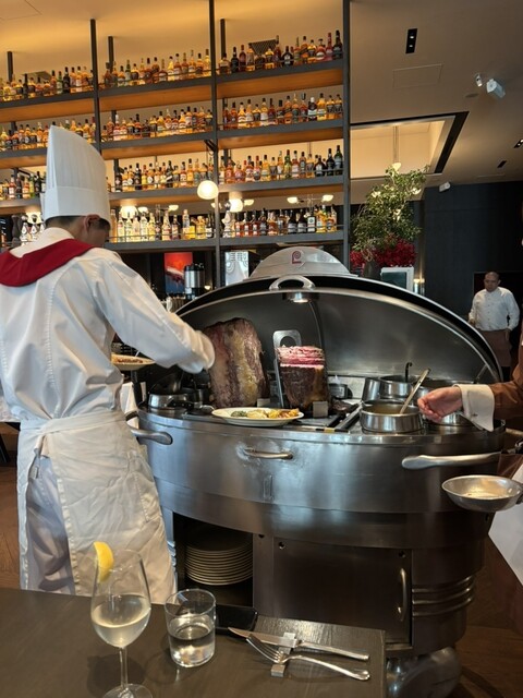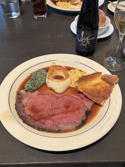 メインのプライムリブは火入れが見事で、しっとり柔らかく、噛むほどに肉の旨みが広がります。ワゴンサービスで切り分けてもらうライブ感もあり、特別感のある時間を楽しめました。