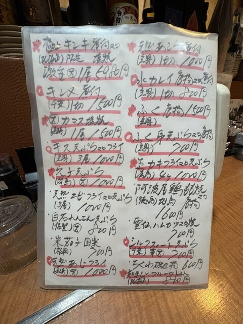バイ貝をツマミに冷たいビールを飲みながら注文を考えます。