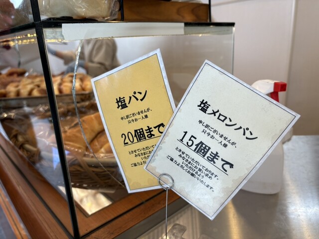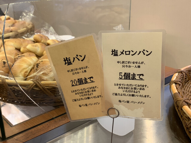 本日の購入制限は、塩パン20個、塩メロンパン3個でした。