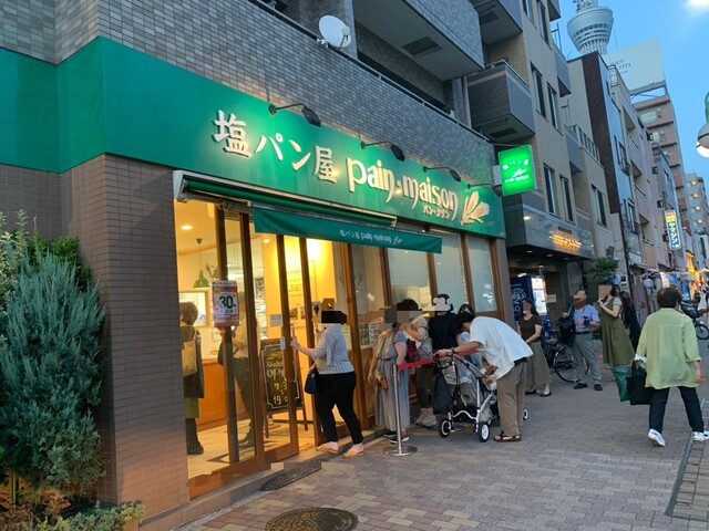 浅草へ向かう途中で、塩パン屋さんの前に、いつもの行列を発見。外待ち9人、店内9人待ち。いつもなら混雑状況からスルーしますが、店頭には日が差し込み、風もなく暖かいので並んでしまいました。
