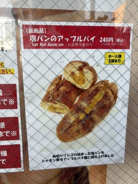 塩パンのアップルパイは、1人2個の個数制限です。