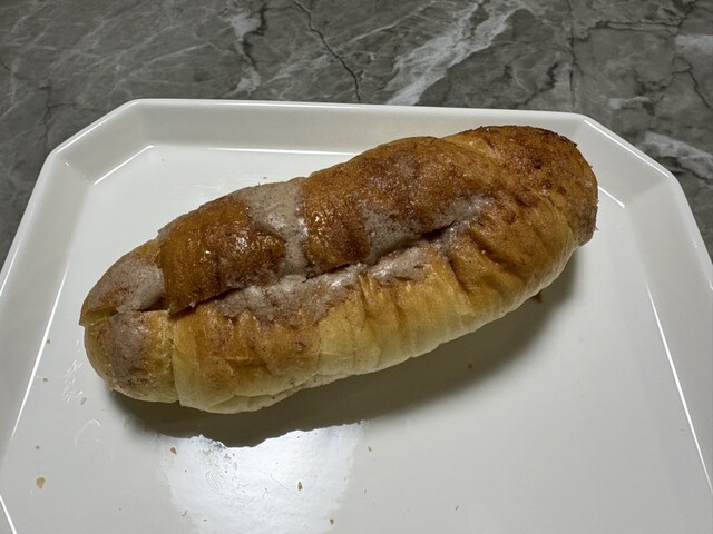 シナモンの香りとダイスカットアップルの甘酸っぱい甘さ、更に塩パンの塩味とバターの風味と塩味。