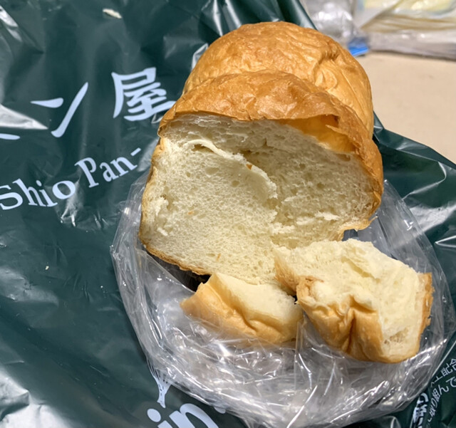 今日は、いつもの「塩パン」@100円以外に「ミニ食パン」200円を購入しました。