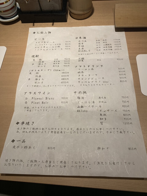 メニューには焼き鳥は無く”おまかせ“のようで、値段は時価なんでしょうか?
