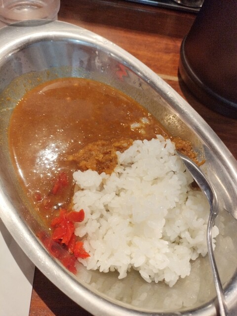 カレーは、生姜の繊維が見えるレベルで入っていて、シャバシャバだけど、コクがありスパイスは効いていて、ご飯と合う感じでした。
