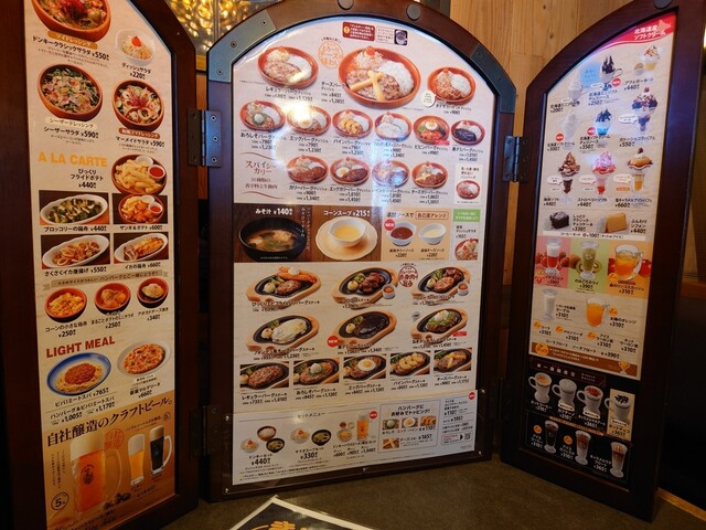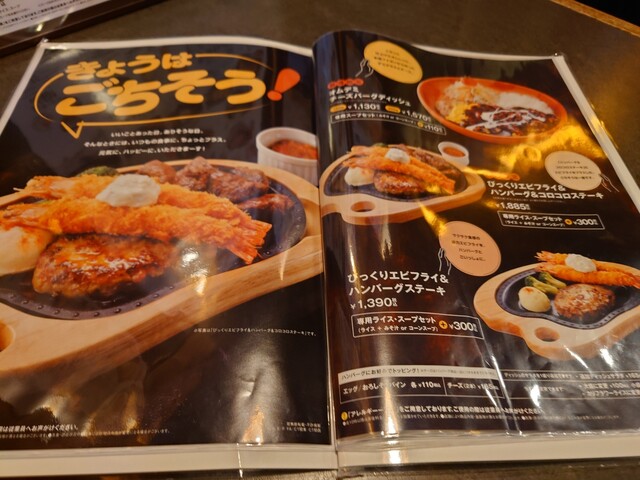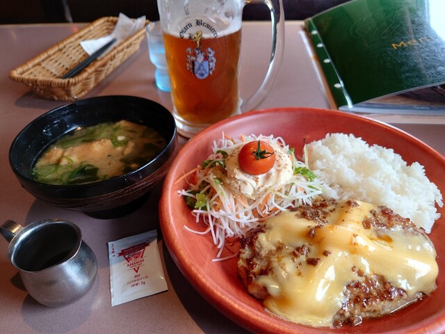 ドンキービール大・ランチレギュラーバーグディッシュM小ライス 1935円(900円+1090円-55円)
