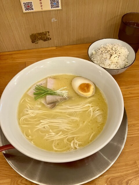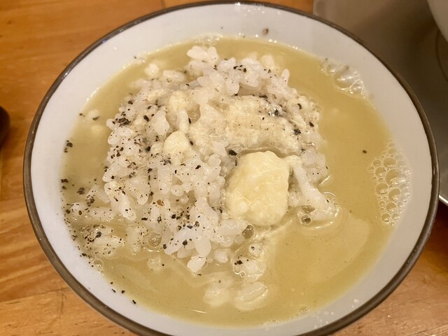 スープの味と香りをストレートに味わえる様に、トッピングも最小限のものを厳選されたそうです。スープを最後まで美味しく楽しく味わえるように、オプションで『リゾットごはん』も用意する気遣い心遣いが素晴らしい!もちろんリゾットも注文して、スープも最後まで全部飲み干しました!ご飯の上に乗っている北海道産パルミジャーノチーズと挽き立て黒胡椒も最高でした!✨