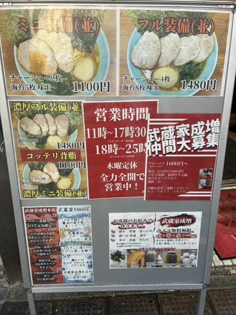 成増駅南口から徒歩10分弱、隣の隣、武蔵家の離れ店。独創性があって、本店とは違った味わい!サービスが充実していて、ライス無限オカワリ可能。