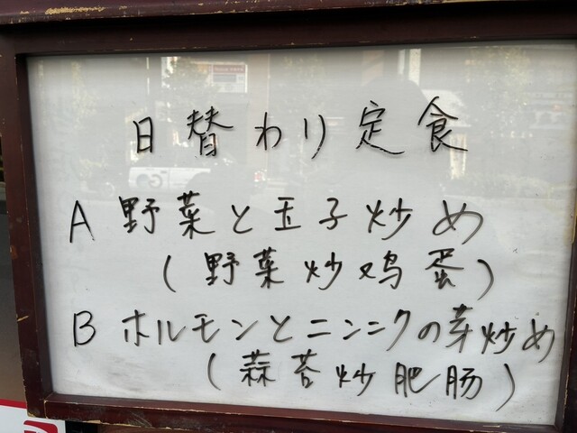 ホルモンとニンニクの芽炒め定食、ご飯大盛り