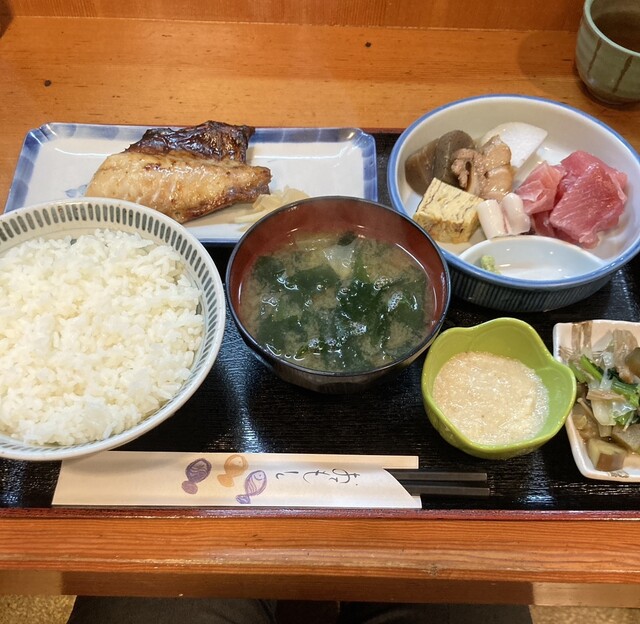 ランチはメニューはありません。ただ座れば定食が運ばれてきます。初めてだと驚くかもしれません。刺身、煮物、小鉢が2つ、焼き魚、ご飯と味噌汁。しかも全部手料理。それで900円。