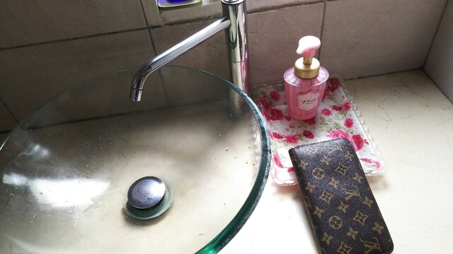 • 女将に照れてなかなか入れない財布先生。