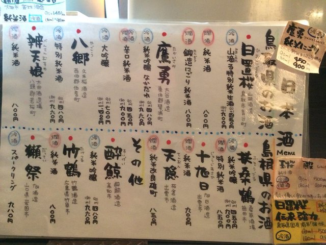 鳥取の地酒、私の好きな鷹勇があるのが嬉しいですね。