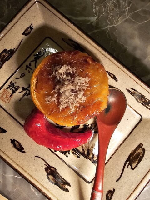 中には無花果、ホタテ、ラ・フランスがはいっており、濃厚みそと甘いフルーツと楽しいハーモニーがとてもインパクトに残ります