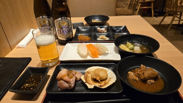 函館湯の川温泉、ホテルバイキングといえばここ。クオリティが素晴らしい。海鮮中心ですが、色々あり。お刺身豊富で海鮮丼作るにあたり酢飯とごはんが別々といったこだわりぶり。サッポロクラシックビール飲みながら至福の時間。夜のみならず朝食バイキングも最高。