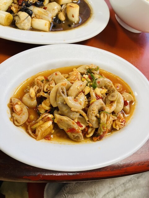 将来に備えて「辛味を抑えつつ満足度の高いメニュー」を探すのも今回の目的のひとつで、そこで初めてカキ炒めを注文した。