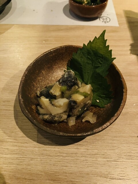 山芋キムチ、つぶ貝わさび、タコ唐。