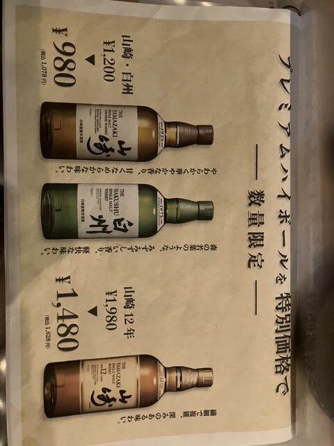 本日はなんと、山崎、白州、山﨑12年が特価でいただける日で最高でした。