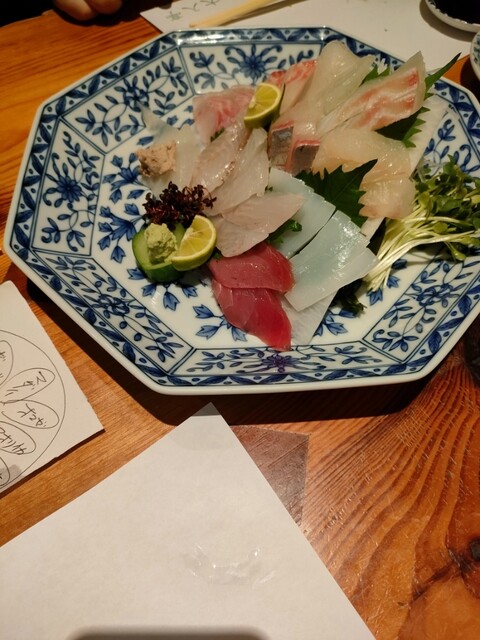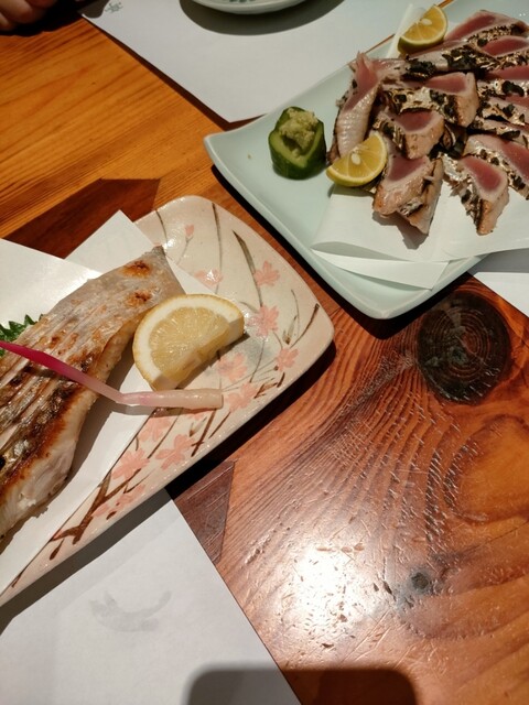 刺し身盛り合わせのほか、まながつお焼いたの、しらす卵焼き、かつお塩焼きなど。