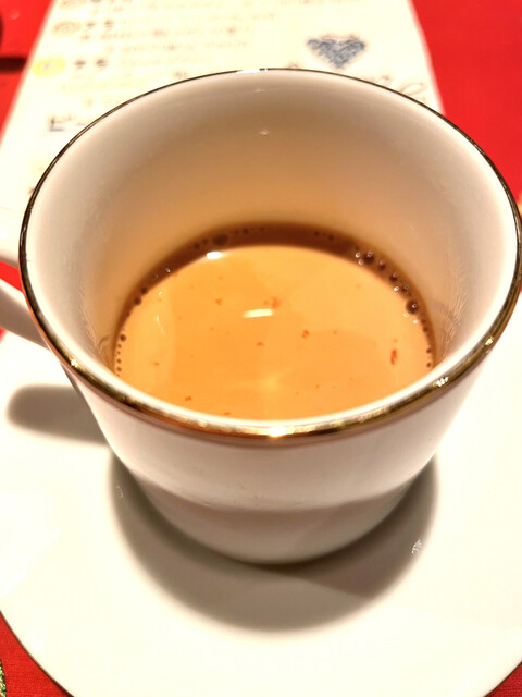ひきたてのスパイスで煮出したチャイ。お砂糖は自分で。