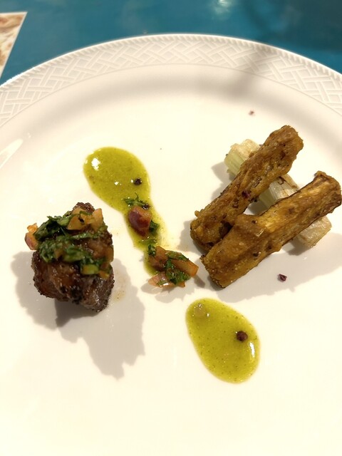定番の骨付きのラムは、私の中のラムの概念を変えてくれた逸品。口にした瞬間に、思わずにっこり。