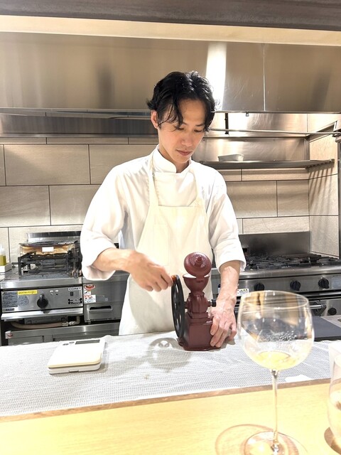 口福鼻福はもちろんですが、こちらは目福度が半端ない。いつもなら写真はお料理とメニューくらいしか撮らないんですけど、後で見てみたら、金川シェフの凛々しいお姿がいっぱいでした(汗)